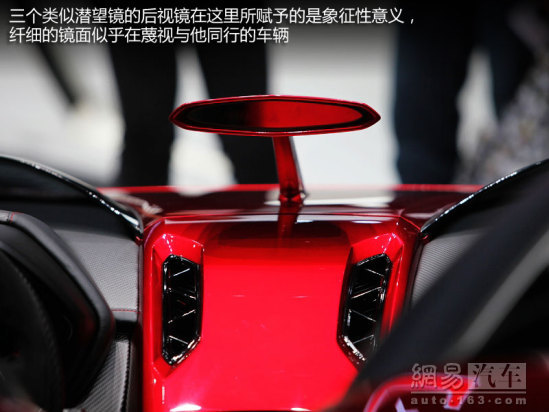三個類似潛望鏡的后視鏡在這里所賦予的是象征性意義,纖細(xì)的鏡面似乎在蔑視與他同行的車輛,