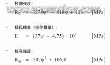 例如: 已知某0o/90o鋪層的玻璃纖維布制成的玻璃鋼層壓板材,經(jīng)測試?yán)w維含量為φ=0.561,參考2.1中列出的相關(guān)參數(shù),帶入以上公式得: