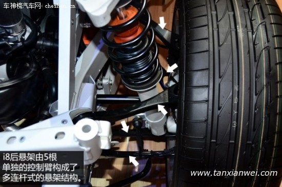 整個乘員艙的結(jié)構(gòu)由多層碳纖維復(fù)合材料拼合而成,輕量化和高強(qiáng)度是它最大的特點(diǎn),這樣的設(shè)計(jì)類似于F1賽車中駕駛艙的單體橫造結(jié)構(gòu)(由碳纖維復(fù)合材料構(gòu)成),而最終的效果就是i8的車身重量不到1.5噸。