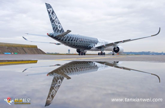 生產(chǎn)序列號(hào)為MSN2的第三架空客A350xWB測試飛機(jī)身披“碳纖維”特別涂裝精彩亮相