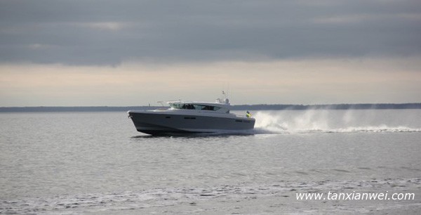 這艘由瑞典Delta Powerboats公司推出的Delta 54 Carbon Cruiser豪華游艇,材質(zhì)近似蘭博基尼超級(jí)跑車,重量比同型游艇減輕三成,但航行速度更快,將為中國玩家?guī)碓诤I像{駛超級(jí)跑車般的暢快感覺。