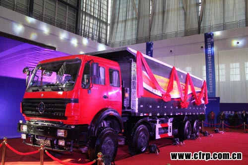 北奔在今年北京車展上展示的V3輕量化牽引車(H09)自重低于8噸。通過(guò)優(yōu)化并匹配動(dòng)力傳動(dòng)、制動(dòng)、轉(zhuǎn)向、車電及發(fā)動(dòng)機(jī)輔助系統(tǒng)等不同成本的系列化模塊,組合形成4x2、6x2、6x4、8x4四種驅(qū)動(dòng)型式的牽引車、載貨車、自卸車系列車型。