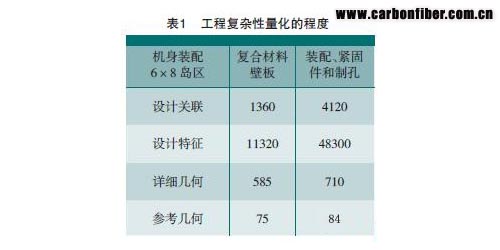 事實上,我們嘗試著量化大型航空結構復合材料壁板的復雜性。舉個例子,對于一個由桁條和框分割的包含6×8 個島區(qū)的典型商用飛機的的航空壁板,得到如表1 所示的一組統(tǒng)計數(shù)字。創(chuàng)建了幾何參考并且保留在CAD 環(huán)境中。細節(jié)的幾何元素手動創(chuàng)建但沒有在三維CAD 環(huán)境中提交并確認。除了幾何數(shù)據(jù),對于復合材料蒙皮有11320 個非幾何特征,對于裝配件、緊固件、孔等有48300 個非幾何特征。這些特征不屬于三維CAD 或者PLM 的一部分。另外,這些關系沒有在三維CAD 或者PLM 中捕獲,也沒有在設計意圖中體現(xiàn)。在CAD 和PLM 軟件中有超過90% 的數(shù)據(jù)沒有捕獲并且沒有有效管理。 本文來自123