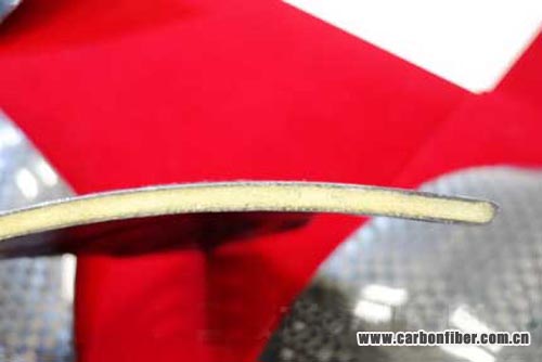 工業(yè)用換氣扇葉片的截面。這是一種用CFRP夾入輕量樹脂的復合材料。