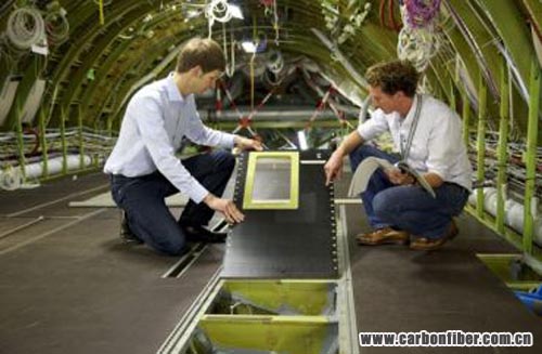 在客機結構中采用碳纖維復合材料,不僅可以減輕機身重量,其本身亦發(fā)揮了重要的承力作用。波音新款787夢想客機和空客A350的機體結構用的幾乎全是碳纖維。在一些關鍵承力部位,像龍骨梁(keel beam)、后部隔框(rear bulkhead)、中央翼盒(center wing box),碳纖維也在發(fā)揮著愈加重要的作用。