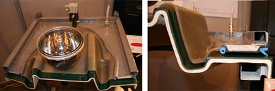 RTM和LRTM工藝也可以使用預(yù)制件和嵌件,當(dāng)使用預(yù)制件時(shí)可得到高纖維體積含量的產(chǎn)品。LRTM工藝產(chǎn)品可以不上膠衣,只要一般的脫模蠟,產(chǎn)品就可脫模。但RTM產(chǎn)品如不用膠衣,脫模較為困難。