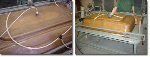模具是這兩種工藝的最大差別,在RTM投資中,由于注射壓力大,相當(dāng)部分的成本花在模具和夾緊裝置上。這樣對(duì)于產(chǎn)量少的產(chǎn)品在價(jià)格上是不適合的。RTM工藝模具使用壽命可達(dá)5000件以上,生產(chǎn)效率高,適合年產(chǎn)2000件以上的產(chǎn)品。