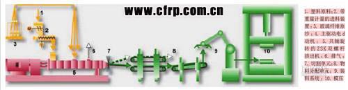 圖2 Coperion 公司的D-LFT 長(zhǎng)玻纖增強(qiáng)熱塑性塑料在線配混工藝設(shè)備布置示意圖