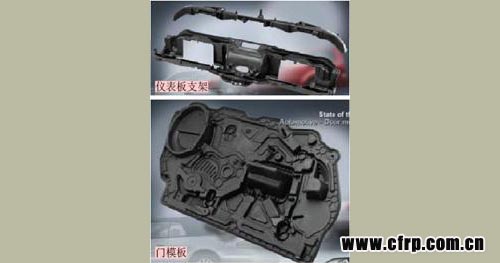 目前,LFT工藝在汽車部件中的應(yīng)用除了非外觀結(jié)構(gòu)和半結(jié)構(gòu)部件以外,用于外觀部件的制造技術(shù)也逐漸成熟。例如,將巴斯夫開發(fā)的PMF(無漆膜成型)表層工藝與LFT工藝進(jìn)行復(fù)合,可以提供更為優(yōu)質(zhì)的外觀表面。另一種技術(shù)是,將預(yù)先沖壓好的金屬部件與LFT工藝復(fù)合,并在注塑前放入模具中,可合模后注塑成型出金屬/非金屬復(fù)合結(jié)構(gòu),并由金屬層提供優(yōu)質(zhì)的外觀表面。 copyright 123456