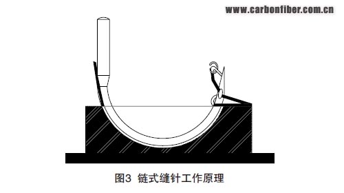 (2)鏈?zhǔn)娇p合??p頭固定于懸臂機(jī)械手上,依靠機(jī)械手來(lái)完成復(fù)雜的縫合動(dòng)作。因此,鏈?zhǔn)娇p合可以完成所有復(fù)雜曲面預(yù)制體的縫合,但由于縫針為彎月形縫針,所以鏈縫通常適用于相對(duì)較薄的預(yù)制體。鏈?zhǔn)娇p合的最大縫合厚度為10mm,當(dāng)纖維預(yù)制體厚度小于1mm,且零件型面曲率較大時(shí),在雙面縫合工作平臺(tái)的限制下無(wú)法使用鎖式縫合;而對(duì)于Tufting縫合,因?yàn)榱慵^薄,縫線(xiàn)不易留在零件內(nèi),所以對(duì)于此種預(yù)制體的縫合最好采用鏈?zhǔn)娇p合方式。 本文來(lái)自123