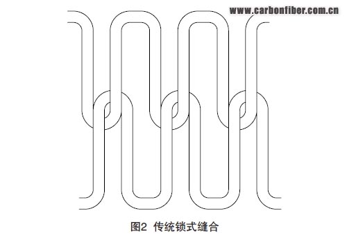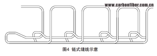 單面縫合是縫針從預(yù)制體的上面穿透制件進(jìn)行縫合,而另一面沒(méi)有縫合單元,縫頭只是在被縫合件的單面完成縫合工作。復(fù)合材料常用的單面縫合主要有鏈?zhǔn)脚cTufting 2種縫合方式 。
