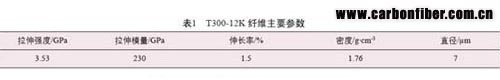 試驗(yàn)采用市售商品日本東麗公司聚丙烯腈( PAN) 基碳纖維,牌號(hào) T300B-12K,簡(jiǎn)稱 T300,它是國(guó)際公認(rèn)的通用級(jí)標(biāo)準(zhǔn)碳纖維,性能參數(shù)見表1。
