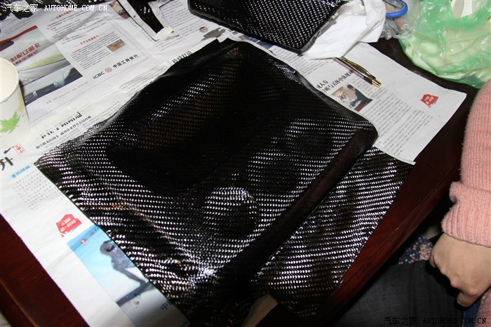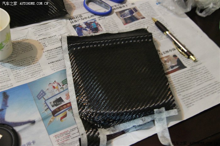 覆蓋碳纖維布的時(shí)候要注意,不能用手指用力按表面,否則碳纖維布的纖維很容易被弄亂,弄亂了就不好玩了。。。