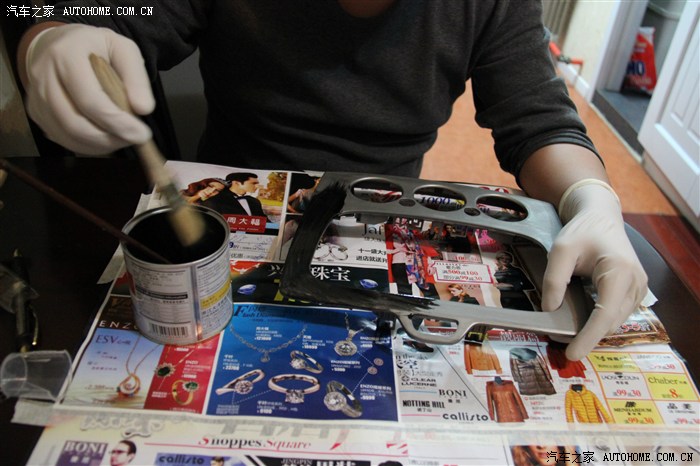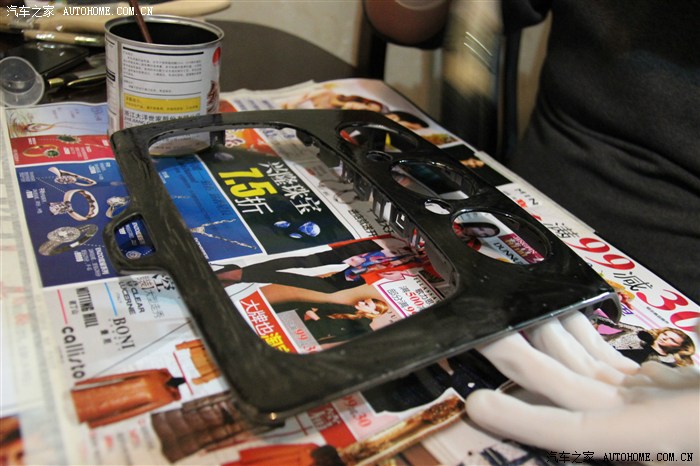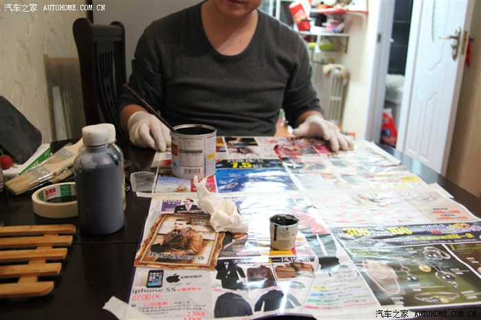 四十分鐘之后,可以開(kāi)始刷膠了,帶上手套吧,黑膠弄到手上很難清理的。