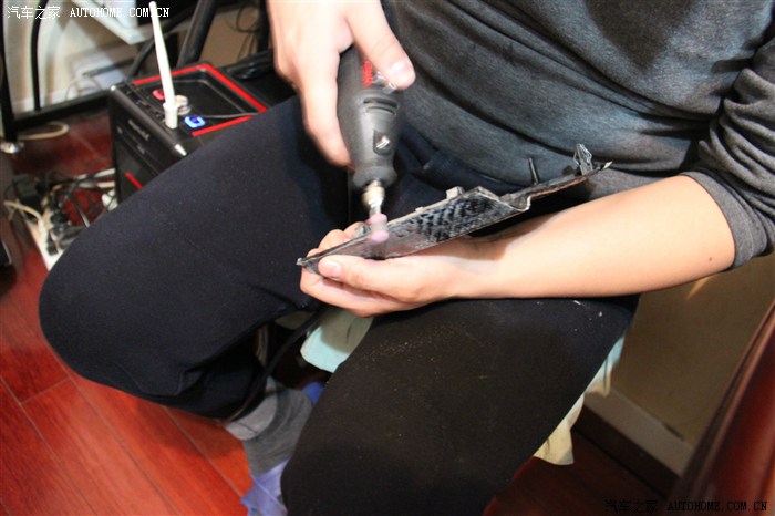 1. 用電磨摳孔打磨的時(shí)候,一定要穿長(zhǎng)袖的衣服,袖口扎緊,并且?guī)峡谡?,切記帶上口罩。上圖我就因?yàn)闊?,把袖子挽起?lái)了,結(jié)果打磨的粉塵落在了我手臂上,弄得我很癢。不過(guò)解決方法我也找到了,就是用搓澡巾濕巾搓吧。
