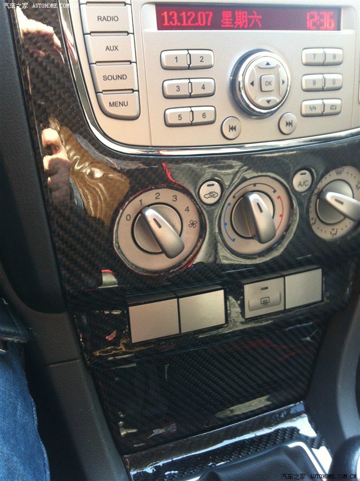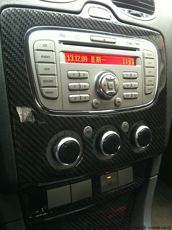 為了配合碳纖維的顏色,我又在網(wǎng)上買了空調(diào)旋鈕的改裝件,安裝上之后,感覺(jué)不錯(cuò)。
